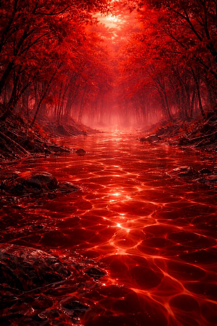 Es schien, als stünden sie auf dem Grund eines mit blutigem Wasser gefüllten Pools. Überall um sie herum tanzten wie Irrlichter Kaustiken, zeigten das Lichtspiel am Boden eines Wasserbeckens, in dem die Wellen so steil sind oder das Wasser so tief ist, dass Lichtstrahlen, die sich kreuzend, dort Muster bilden. Der Himmel über ihnen leuchtete zinnober und orange wie ein stilles Meer im Sonnenuntergang. Das rote, flackernde Licht verwandelte das Blattchlorophyll der Hainbuchen um sie herum in braunen, zappelnden Schlamm. Er kannte Luftaufnahmen der Gemarkung, das Tal sah aus, als wäre es mit verdünntem Blut gefüllt. Treibstoff, hieß es, obwohl es nicht einmal wirklich stofflich war. Tatsächlich konnten sie hier problemlos atmen, auch wenn ein leichter Ozongeruch in der Luft lag.