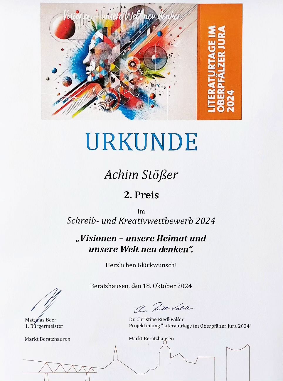 1) Erstveröffentlichungen (Auszug: folgt)Rezension: "Achim Stößer ist dafür bekannt, sich in seinen Kurzgeschichten mit komplexen und schwierigen Themen zu befassen und dabei klar Stellung zu beziehen. [...] Religionskritik ist ein heißes Eisen, da die Gläubigen der betroffenen Religionen nicht unbedingt alle gelassen damit umgehen können. Es gehört also schon ein großes Maß an Mut dazu, sich der zu erwartenden Kontroverse auszusetzen. In der deutschsprachigen Science-Fiction findet sich das nicht allzu oft. [...] Ohne die vielleicht vorhandenen tiefer gehenden theologischen Details genau identifizieren zu können, lassen sich einige Themengebiete festmachen: Sexueller Missbrauch und generell Machtmissbrauch durch Religionsvertreter, die Absurdität von Glaubenskonzepten, Missionierung und die negativen Auswirkungen von Religion auf die Entwicklung intelligenter Lebensformen. Ja, in Achim Stößers Geschichten sind auch Aliens nicht vor Religion gefeit. [...] Achim Stößer ist ein erfahrener Kurzgeschichtenautor. Seine Stärken liegen in der sarkastischen Überhöhung religiöser Absonderlichkeiten, die er mal mit feinem Witz, mal mit naturalistischer Schärfe bloßlegt, gerade die Geschichten, in denen sich Aliens mit ihrer eigenen Religion herumschlagen, zählen zu den Höhepunkten der Sammlung." (Ralf Steinberg) "Wer den Kunstpreis Der Freche Mario im Auge hat, erinnert sih vielleicht daran, dass 2026 einer der Preisträger Achim Stößer hieß. Bekannt ist Stößer aber weniger durch seine künstlerischen als durch seine literarischen Werke. [...] Wer Religionskritik und Kurzgeschichten mit Aha-Effekt mag, wird sich von Achim Stößers Erzählungen gut unterhalten fühlen." (Gunnar Schedel, MIZ 3/24) |
