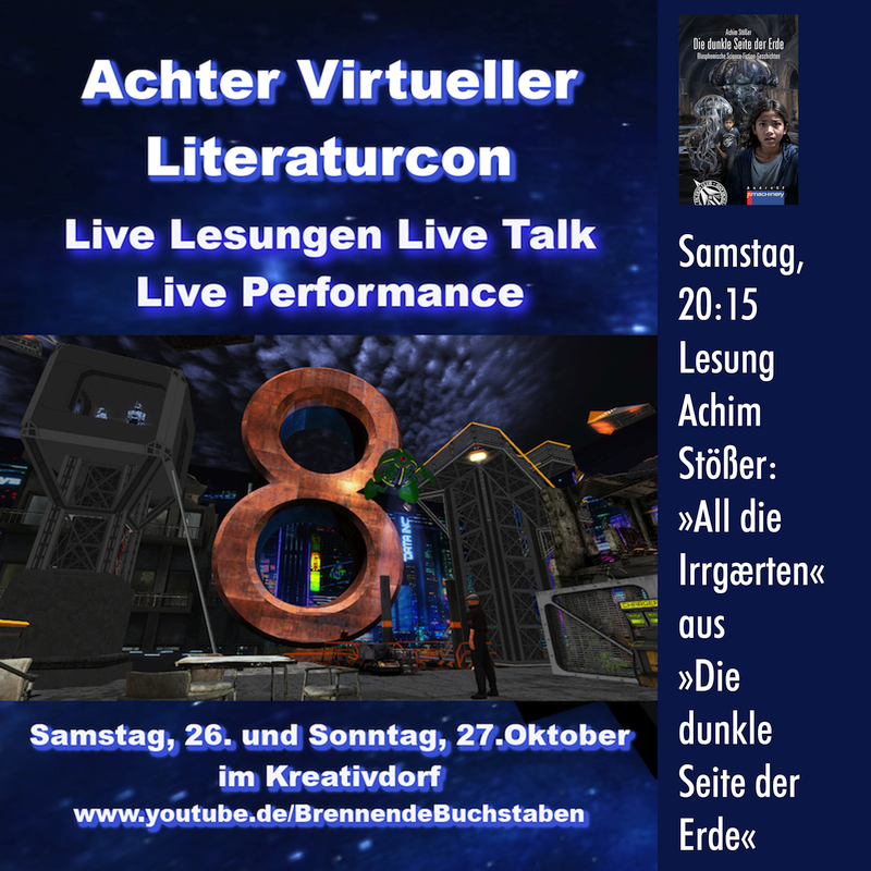 Samstag, 26. Oktober 2024, Lesung aus »Die dunkle Seite der Erde« beim siebten virtuellen Literaturcon der »Brennenden Buchstaben«.