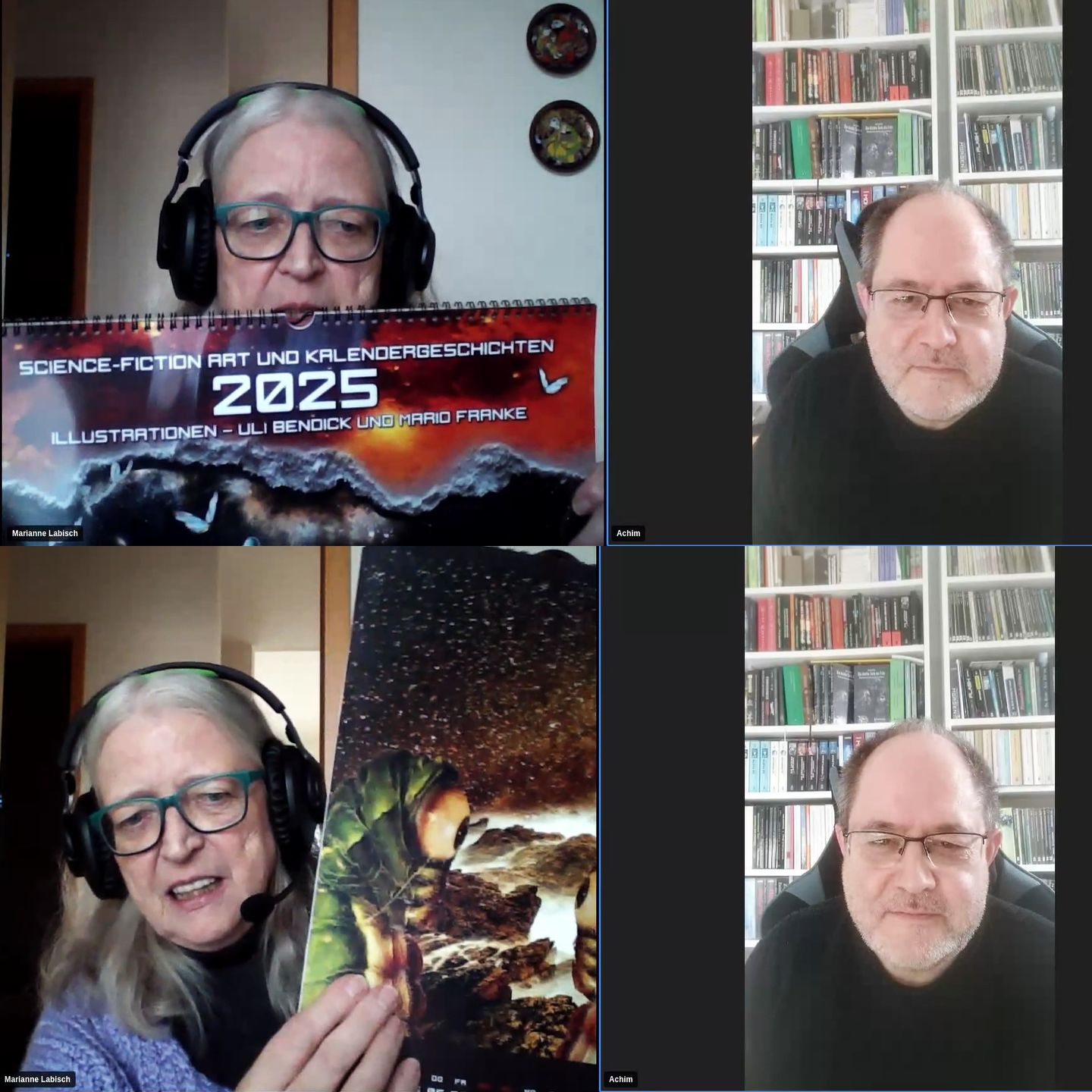| Interviews | ![]() Video-Interview (von Marianne Labisch) zum Kunstkalender »Science-Fiction Art und Kalendergeschichten 2025« mit meiner Kurzgeschichte »Nonne und Zögling«. |